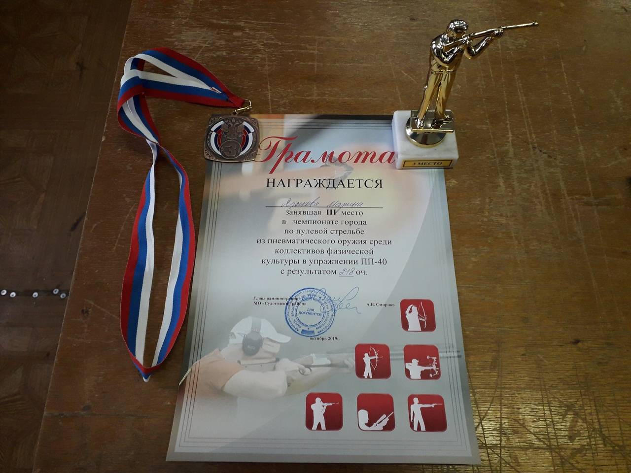 В Судогодском районе проведены чемпионат города и Кубок района по пулевой стрельбе из пневматического оружия. В этих соревнованиях приняла участие и команда Судогодского пожарно-спасательного гарнизона. Участниками команды «МЧС Судогда» стали водитель ПСЧ-79 – Тюрин Михаил, командир отделения ПСЧ-79 – Пичугин Вадим и инженер 5 ОФПС – Языкова Марина. Команды соревновались в двух упражнениях – ВП-40 (40 выстрелов стоя из пневматической винтовки) и ПП-40 (40 выстрелов из пневматического пистолета). В общем командном зачете команда «МЧС Судогда» заняла третье место, в личном зачете среди женщин по стрельбе из пистолета инженер 5 ОФПС Языкова Марина также заняла третье место. Участников наградили дипломами, грамотами и кубками.