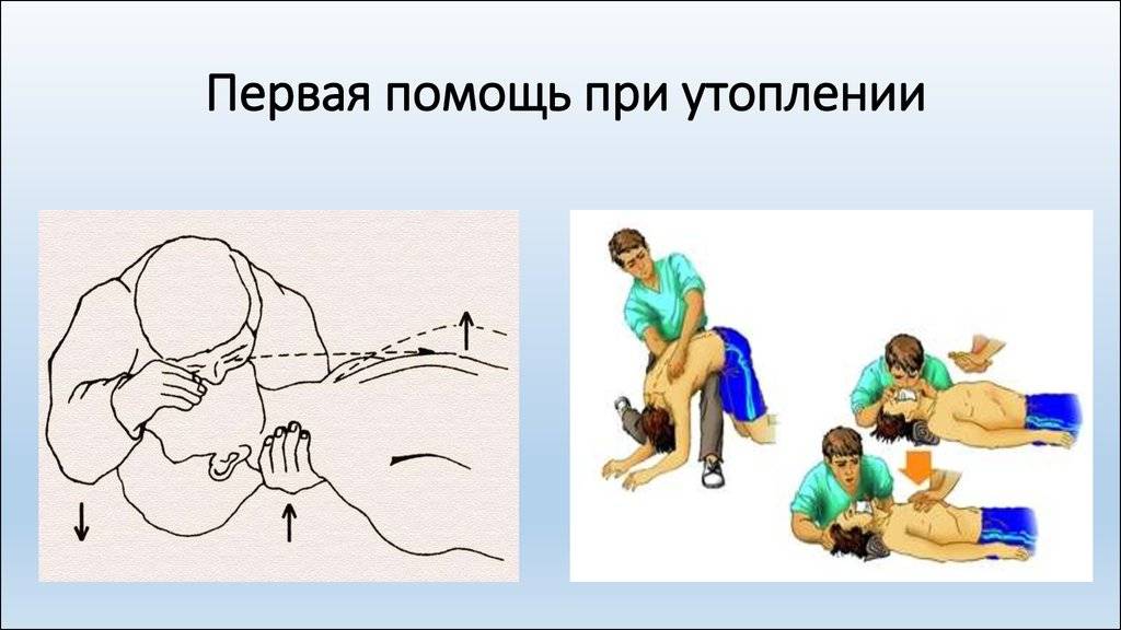 Первая помощьнаправлена на извлечение пострадавшего из воды и на его оживление.