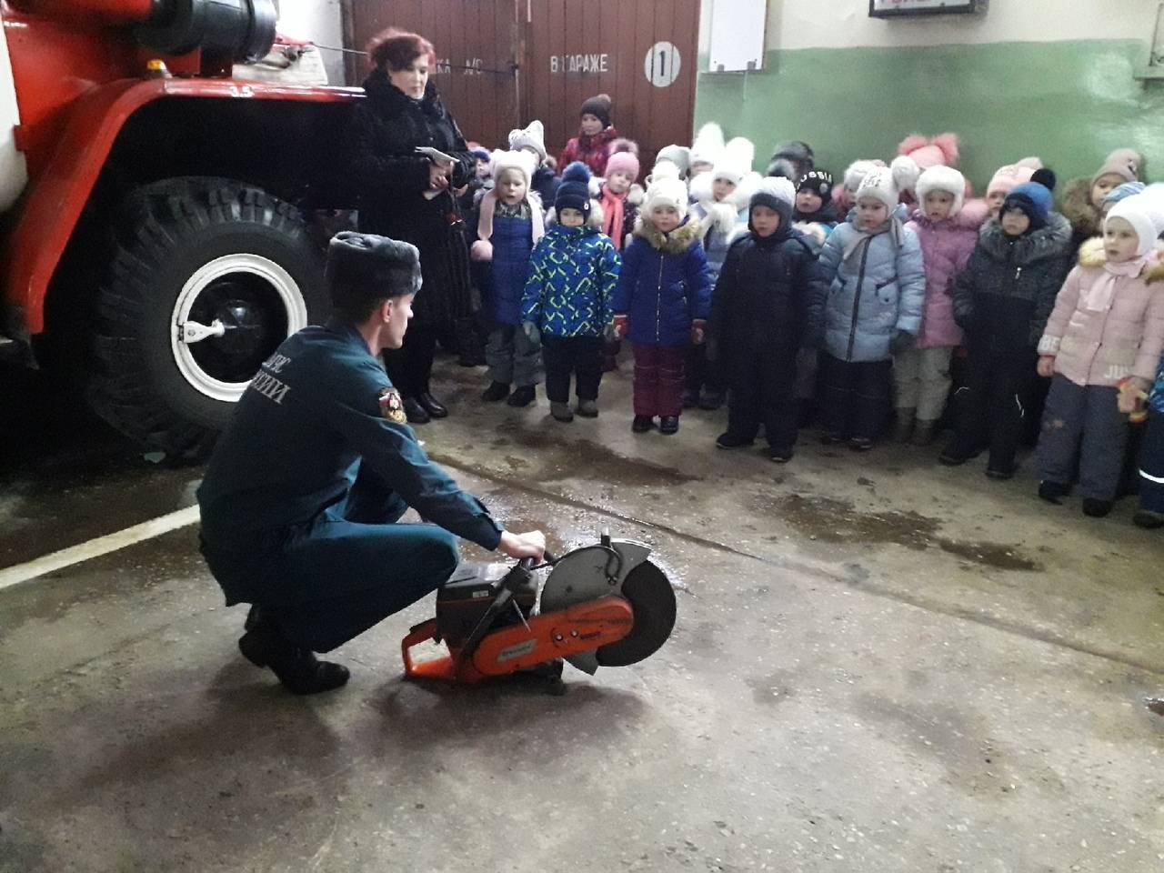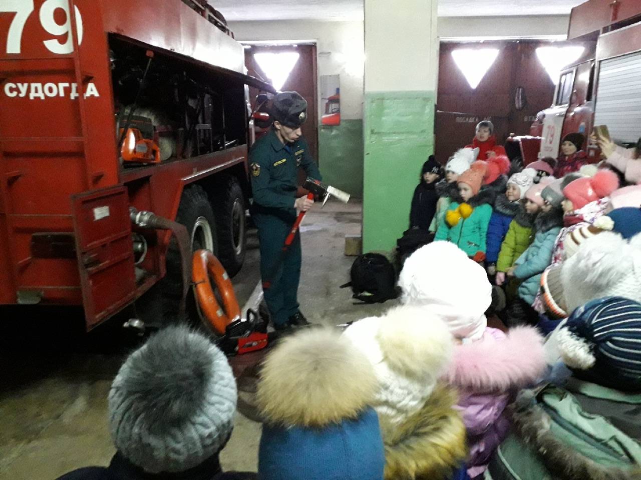 17 января в гости к огнеборцам пожарно-спасательной части № 79 города Судогда пришли воспитанники детского сада «Сказка». В качестве экскурсовода выступил начальник части Сергей Евграфов. Он показал ребятам пожарно-техническое вооружение, аварийно-спасательные инструменты, боевую одежду пожарного. Объяснил устройство каждого механизма и принцип действия машин и снаряжения. С восторгом дети слушали, как громко ревет сирена на пожарной машине.
